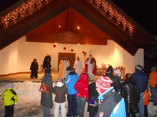 Advent in Mösern: Ein Besuch am Glühweinstand in Mösern war am 5.Dezember 2010 ein Erlebnis. Am Pavillon hat sich ein besonderer Besuch angesagt: Da war der Heilige Nikolaus zu Gast und hat sich über so mach braves Kind gefreut.